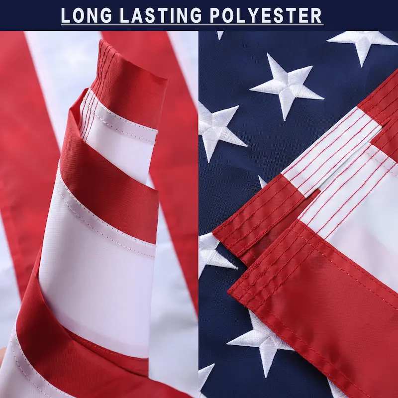Show your America pride with this durable, embroidered flag made from 210D Polyester Oxford fabric. Perfect for both indoor and outdoor display, it offers long-lasting strength and vibrant detail.
